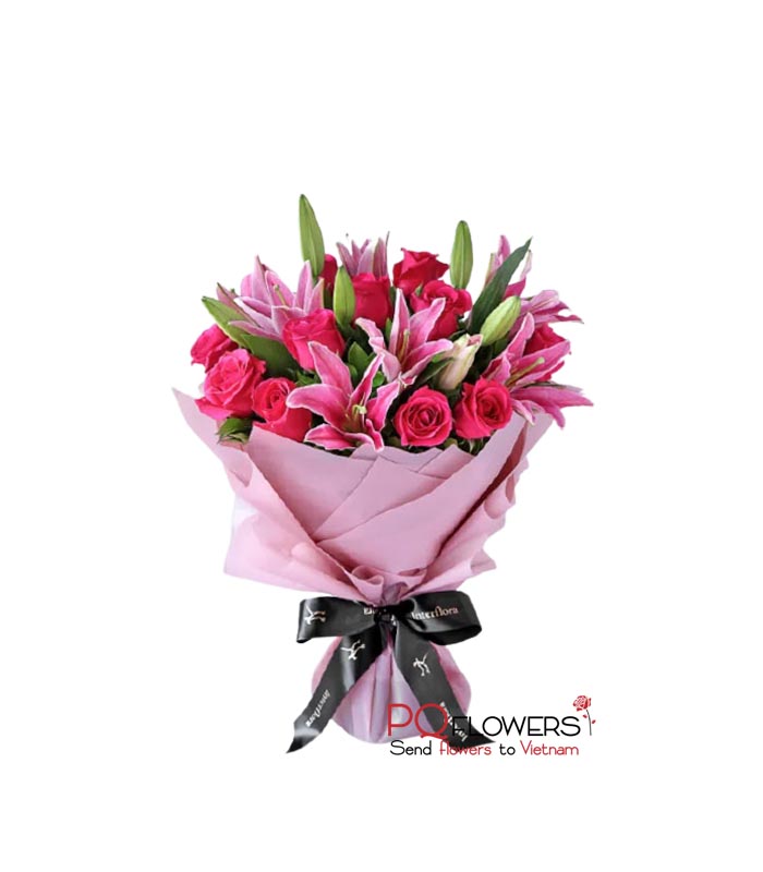 Radiant Pink -Roses and Lilies Bouquet 7436