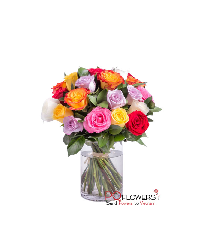 Rainbow sky – 20 Mix roses Vase 7663 , Show your special someone with this vase of 20 amazing Roses,…