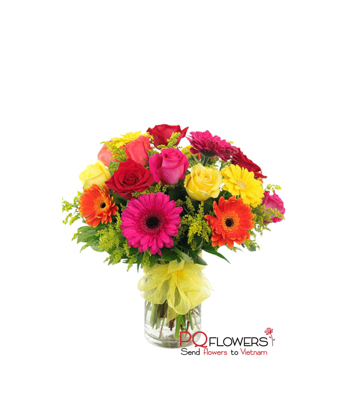 Sunny day- Gerberas and Roses Vase 7660 , includes 7 roses and 7 gerberas . Suitable for simply any occasions you may have in mind.