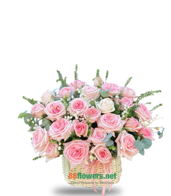 The Sweet Pink Harmony basket is a gentle and elegant arrangement of 25 pastel pink roses, designed to capture the softness, warmth, and tenderness of heartfelt affection. With its delicate color palette and natural charm, this floral gift radiates calm beauty and pure, comforting love.